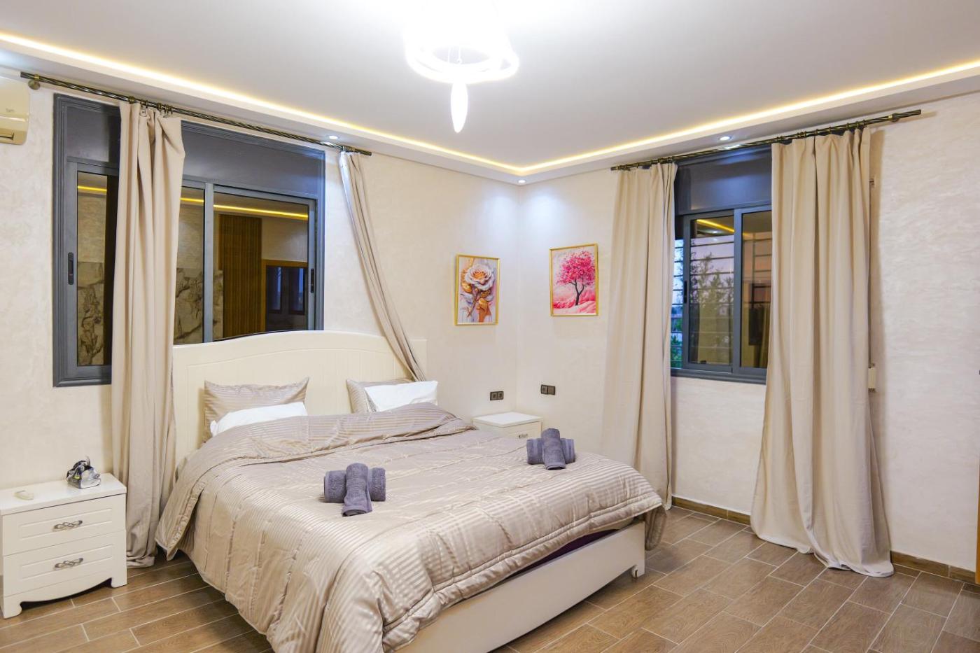 Featuring air-conditioned accommodation with a balcony, Al Nakheel - Ferme Spacieuse avec Grande Piscine Privée et Espace Vert is located in Kenitra. This villa has a private pool, a garden, barbecue facilities, free WiFi and free private parking. The property is non-smoking and is situated 31 km from Bouregreg Marina.
