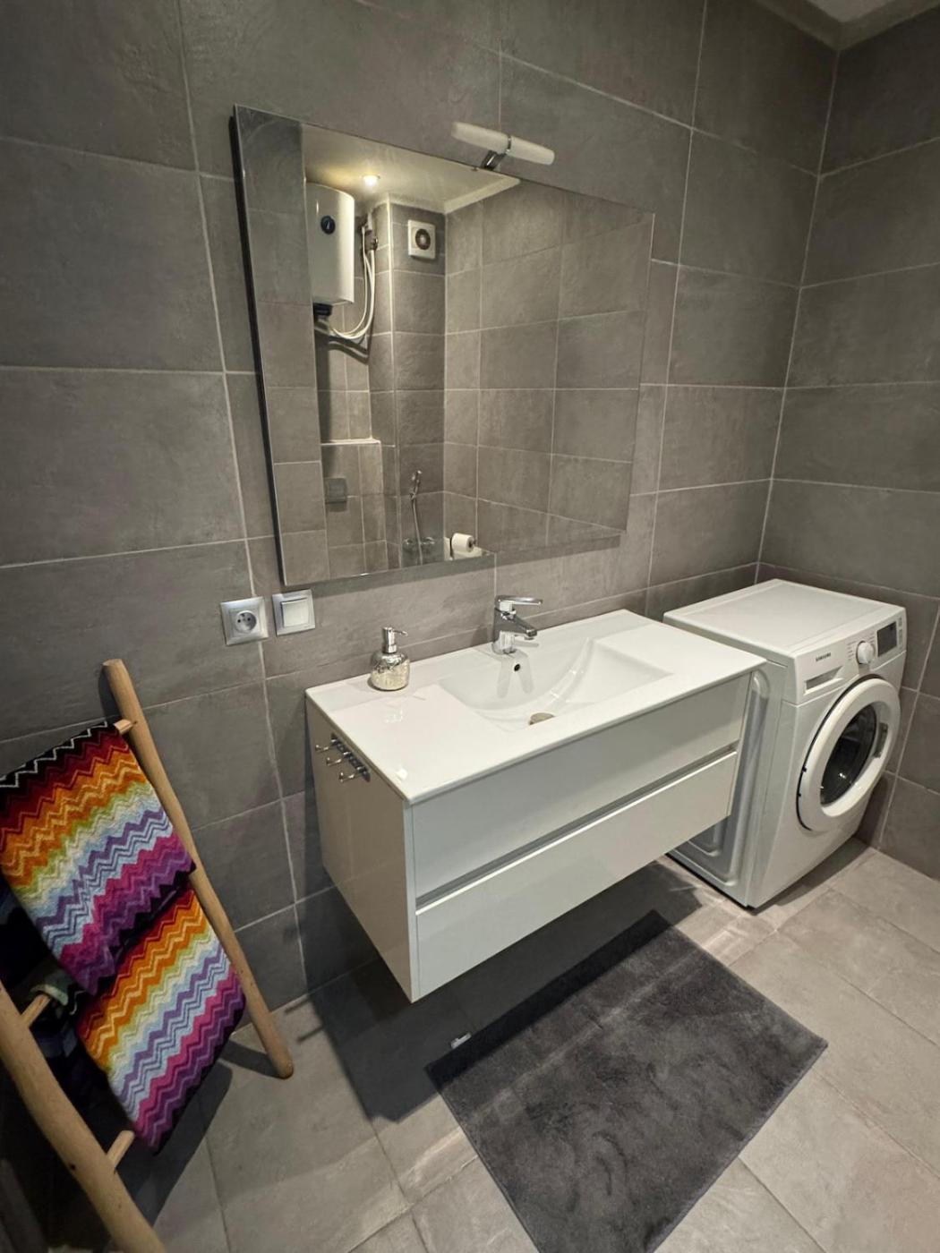 One-Bedroom Apartment. Guests can make meals in the kitchen that comes with a stovetop, a refrigerator, kitchenware and an oven. This apartment is air-conditioned and features a seating area with a flat-screen TV, a washing machine, a coffee machine, a dining area, as well as a wardrobe. The unit offers 1 bed.