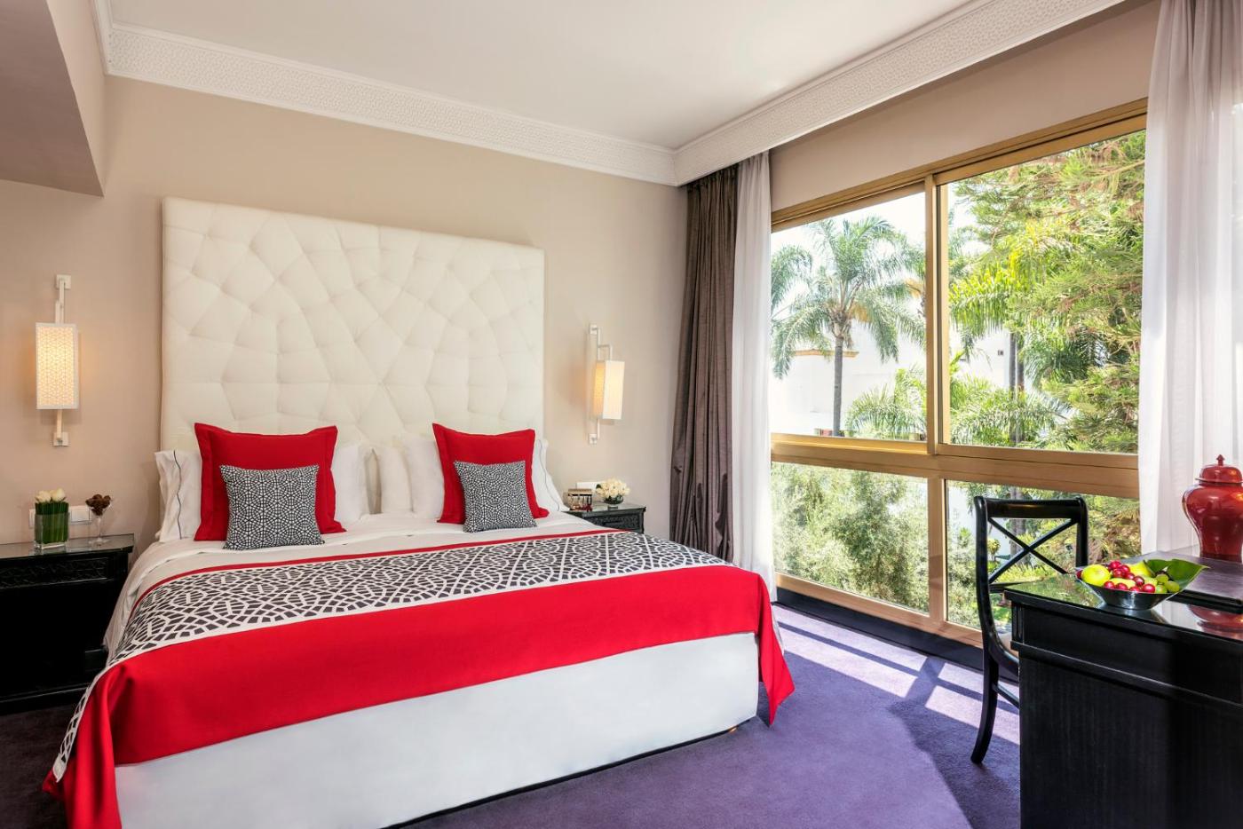 Rooms at the La Tour Hassan Palace combine traditional materials with modern comforts. They feature spacious bathrooms with bathtub, hairdryer and bathrobes. They are also equipped with satellite TV and Wi-Fi access.