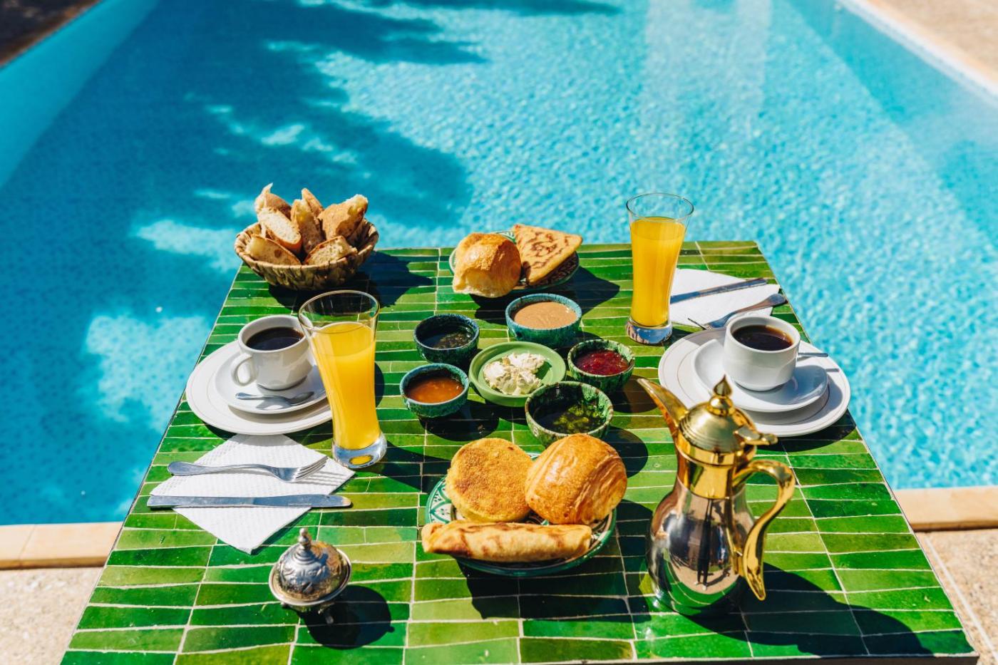 The riad specialises in a buffet and à la carte breakfast and breakfast in the room is also available. There is a coffee shop, and packed lunches are also available.