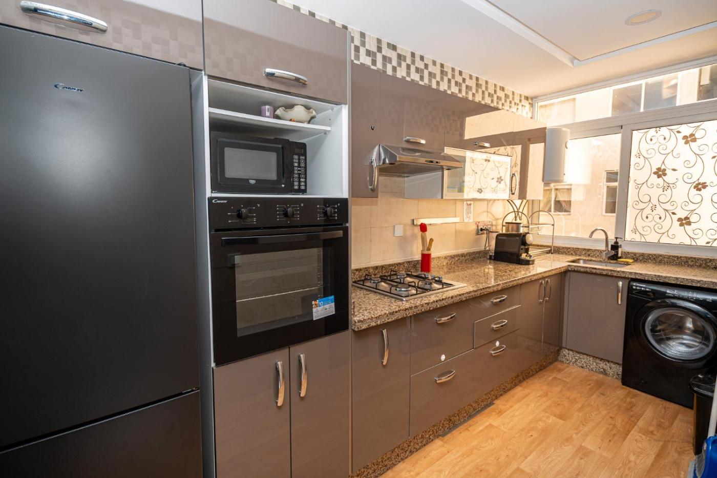 Two-Bedroom Apartment. The apartment has 2 bedrooms, 1 bathroom with a shower and a kitchen. The well-fitted kitchen features a stovetop, a refrigerator, kitchenware and an oven. The apartment offers a washing machine, a tea and coffee maker, a dining area, a flat-screen TV with cable channels, as well as a quiet street view. The unit has 3 beds.